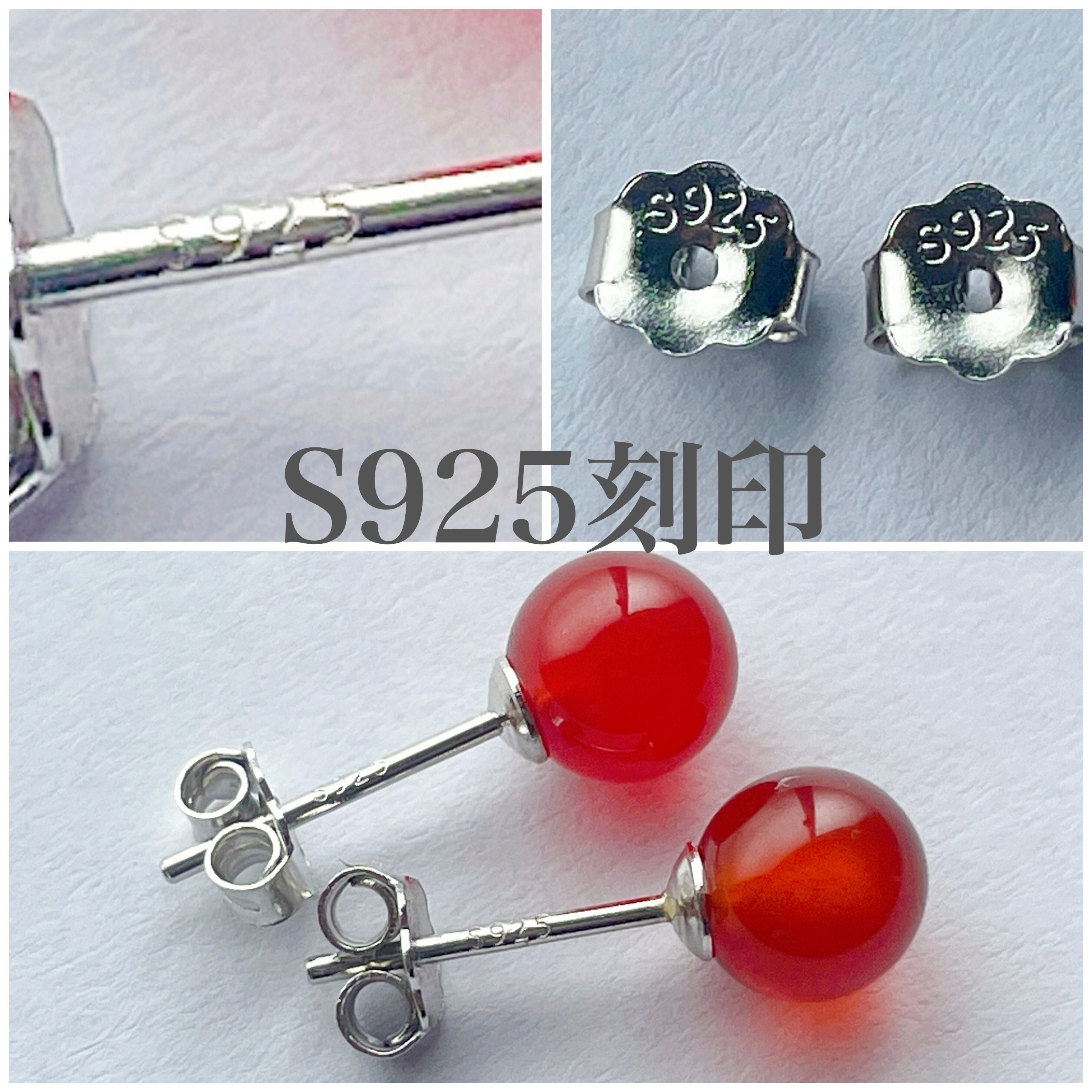 ピアス パワーストーン メノウ レッド 赤 6mm シルバー925 | peacetachio