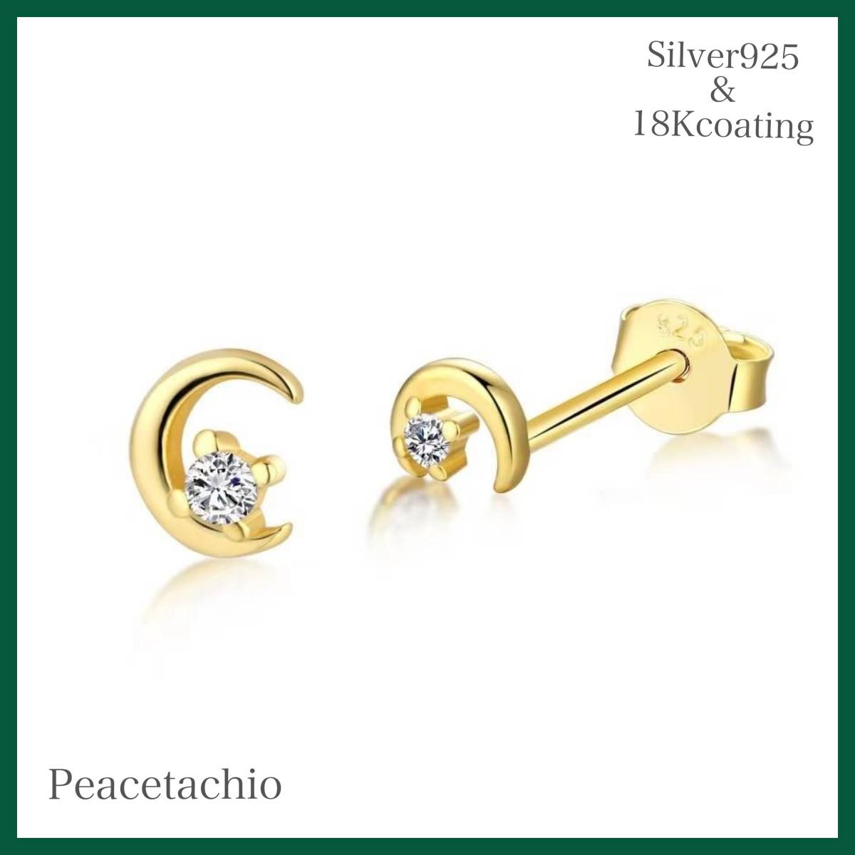 ピアス シルバー Silver925 月 星 ムーン スター CZダイヤ キュービックジルコニア 18Kコーティング 金属アレルギー対応 プレゼント プチギフト 贈り物 収納ケース付 | peacetachio